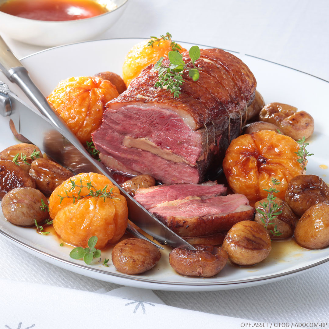 Le rôti 2 Magrets, Foie Gras, clémentines marrons poêlés